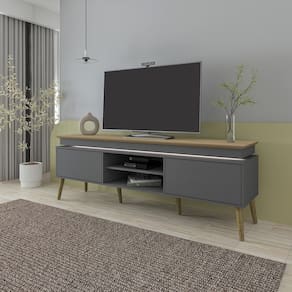 Rack Lumina com Painel Slim p/ TV até 75” com 2 Portas Carvalho/Grafite - Artely
