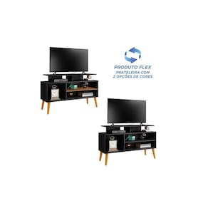 Rack Lyon 1.1 Preto/Canela – Carmolar Móveis