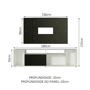 Itens inclusos: - Um (1) Rack de 50 cm de altura x 180 cm de largura x 32 cm de profundidade - Um (1) Painel de 80 cm de altura x 136 cm de largura