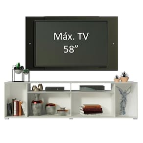 O painel tem design que mistura padrões verticais e horizontais. Comporta TV de até 58 polegadas e possui uma abertura central que facilita na passagem dos fios. Por ser separado do rack, pode ser fixado na altura desejada, conforme sua preferência ou necessidade.