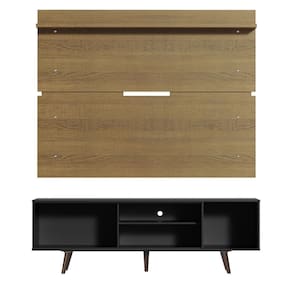 O painel comporta de até 65 polegadas e contempla uma prateleira na parte superior, perfeita para objetos decorativos. Por ser separado do rack, pode ser fixado na altura desejada.