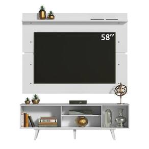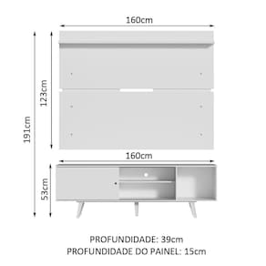 O acabamento do rack e do painel é branco, feito em Pintura Poliéster ecológica com 7 camadas, detalhe que confere mais durabilidade e qualidade aos produtos.