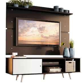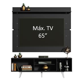 O painel comporta TV de até 65 polegadas e contempla uma prateleira na parte superior, perfeita para objetos decorativos. Por ser separado do rack, pode ser fixado na altura desejada.