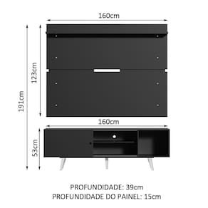 O acabamento do rack e do painel é preto e os pés do rack são brancos. O processo é feito em Pintura Poliéster ecológica com 7 camadas, detalhe que confere mais durabilidade e qualidade aos produtos.