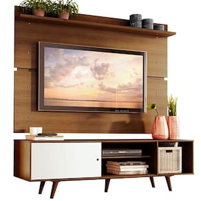 O painel comporta TV de até 65 polegadas e contempla uma prateleira na parte superior, perfeita para objetos decorativos. Por ser separado do rack, pode ser fixado na altura desejada.