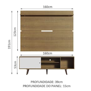 Itens inclusos: - Um (1) Rack de 53 cm de altura x 160 cm de largura x 39 cm de profundidade e pés em PVC - Um (1) Painel de 123 cm de altura x 160 cm de largura x 15 cm de profundidade