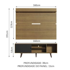 Itens inclusos: - Um (1) Rack de 53 cm de altura x 160 cm de largura x 39 cm de profundidade e pés em PVC - Um (1) Painel de 123 cm de altura x 160 cm de largura x 15 cm de profundidade