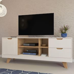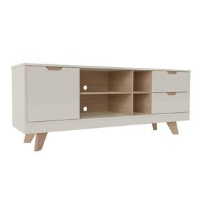 Rack Michigan Off White/Carvalho para TV até 60 Polegadas 04 Portas 02 Gavetas e Pés de Madeira - Artely