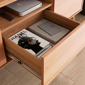 Organização: Amplo espaço para armazenar aparelhos eletrônicos, livros e objetos decorativos.
