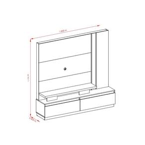 Possui 2 gavetas com corrediças telescópicas e entrada para TV de 1,800m x 1,185m. Seu sistema de montagem Girofix garante praticidade, enquanto o design minimalista, sem pés ou puxadores, mantém o ambiente elegante e organizado.