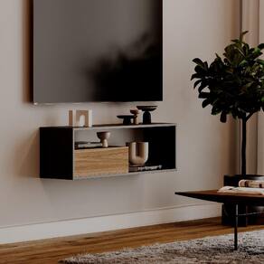 Com design compacto e sofisticado, ele ocupa pouco espaço, deixando sua sala ou quarto mais harmônicos. Possui compartimentos abertos para objetos decorativos e um compartimento fechado com porta, garantindo praticidade e discrição no armazenamento do dia a dia.