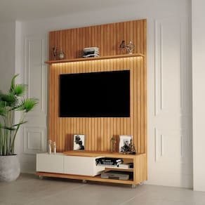 O painel em 100% MDF possui ripado vertical que adiciona charme e elegância.