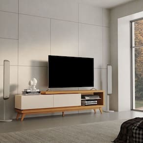 1x Rack para Tv's até 75 Polegadas Nobre 180cm 2 Gavetas Carvalho/Off-White Largura: 180 cm Altura: 57 cm Peso: 58 kg Profundidade: 40 cm Necessita Montagem: Sim