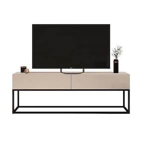 rack off white com 2 gavetas com pes de ferro na cor Preto