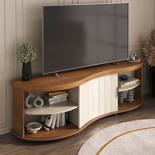 MDF/MDPRack p/ TV até 75” com Porta Ripada Magnum Cinamomo/Off White - Artely