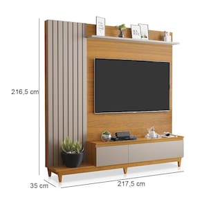 Características: Estrutura em MDF Detalhe Ripado Prateleiras com Amplo Espaço Possui Pés Portas Baculantes Sendo uma com Dobradiça e uma com Pistão Ideal para TV até 65 Polegadas.