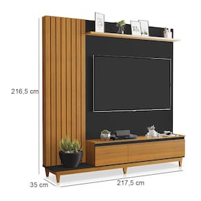 Características: Estrutura em MDF Detalhe Ripado Prateleiras com Amplo Espaço Possui Pés Portas Baculantes Sendo uma com Dobradiça e uma com Pistão Ideal para TV até 65 Polegadas.
