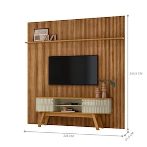 O painel é um produto perfeito, para o seu ambiente ter mais modernidade e praticidade, possui um design elegante com os seus detalhes ripados em alto relevo, testado para suportar TVs de até 75 polegadas.