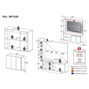 O painel é ideal para TVs de até 55 (suporta até 26kg) e possui espaçamento para passagem de fios, garantindo um ambiente mais organizado e limpo. Caso preferir, a pode ser apoiada no tampo. Além das prateleiras para objetos decorativos, oferece nichos para acomodar equipamentos eletrônicos e 2 portas em alto brilho com puxadores alongados em ABS, mantendo tudo em ordem. Acompanha suporte para fixação da no painel, com TVs LCD, LED e Plasma (14 a 71). As portas contam com puxador passante (embutido no móvel).