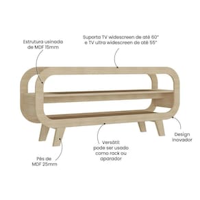 Rack Para Até 60 Polegadas 133,5cm Com Pés Retrô Multimóveis Cr45328 O Rack para até 60 Polegadas 133,5cm com Pés Retrô Multimóveis CR45328 é a solução perfeita para uma sala contemporânea, unindo beleza, uma aparência leve e muito espaço de armazenamento! - Indicado para TVs de até 60 polegadas. - Estilo moderno com curvas: Design arrojado que adiciona um toque contemporâneo à qualquer sala de estar. - Funcional e estiloso: Combinação perfeita entre forma e função para atender às necessidades modernas. - Prateleira para organização: Ideal para exibir objetos decorativos ou dispositivos eletrônicos adicionais. - Espaço inferior amplo: Perfeito para organizar equipamentos, caixas ou acessórios. - Atemporalidade e versatilidade: Adapta-se facilmente a diferentes estilos de decoração. - Qualidade e durabilidade: Fabricado em MDP/MDF com pintura UV, garantindo longevidade.