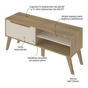 Rack Para Até 60 Polegadas 134cm Com Pés Retrô 1 Porta Multimóveis Cr45323 Carvalho/off White Carvalho/off White O Rack para até 60 Polegadas 134cm com Pés Retrô 1 Porta Multimóveis CR45323 é a expressão de elegância que transformará sua sala em um espaço sofisticado e organizado. - com TVs de até 60 Polegadas: Acompanha o seu entretenimento com estilo e funcionalidade. - Porta Basculante com Detalhe Usinado: Um toque artesanal que acrescenta charme ao móvel e à sua sala. - Prateleira e Dois Nichos Organizadores: Espaços inteligentes para dispositivos e decorações, mantendo tudo no lugar. - Elegância em Cada Detalhe: Design refinado que cativa olhares e complementa a decoração. - Adaptação a Diferentes Ambientes: Ideal para salas de estar, oferecendo um toque de requinte. - Durabilidade e Resistência: Produzido em MDP/MDF com pintura UV.
