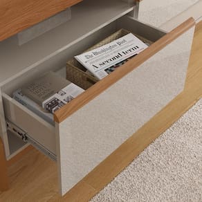 Características Técnicas Dimensões: Altura: 63,50 cm Largura: 183 cm Profundidade: 38,40 cm Peso: 42,55 kg Materiais e Estrutura: Tampo em MDP de 37 mm, garantindo durabilidade e resistência. 2 gavetas com corrediças telescópicas para um deslizamento suave. 1 porta central equipada com pistão a gás, proporcionando fácil acesso. Pés e puxadores em madeira maciça, oferecendo maior design, estabilidade e suporte. Benefícios e Funcionalidades Estilo e Modernidade: O design elegante e as cores neutras se adaptam a diversos estilos de decoração. Organização: Amplo espaço para armazenar aparelhos eletrônicos, livros e objetos decorativos. Durabilidade: Materiais de alta qualidade garantem longa vida útil ao produto. Praticidade: Fácil de montar, acompanha manual de instruções detalhado. Compatibilidade: Ideal para TVs de até 70 polegadas.Observações Importantes