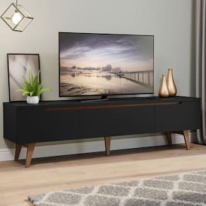 O Rack suporta TVs de até 75 Polegadas e conta com duas portas laterais e uma gaveta central com corrediças metálicas, espaços perfeitos para organizar objetos decorativos, livros, dvd ou o que mais você quiser.
