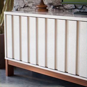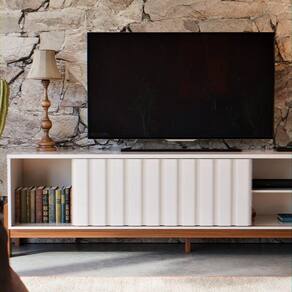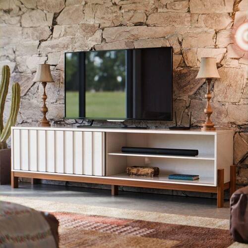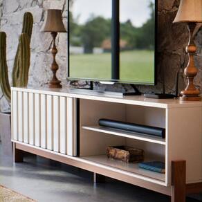 Rack Para De 65 Polegadas Com Porta Ripada De Correr New Aurora Estante E Prateleira Cor Pérola