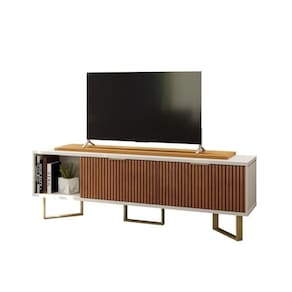 O Rack é ideal para você e para sua sala de estar! Ele possui pés de ferro, portas basculante com articulador e puxadores de plástico para garantir um visual mais bonito para o produto.