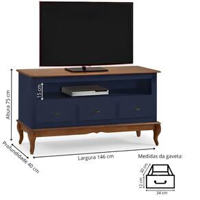 - 01 Rack para Sala com Pés Luis XV 3 Gavetas e Nicho 1034 Meyer Móveis