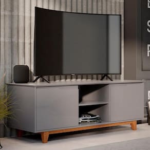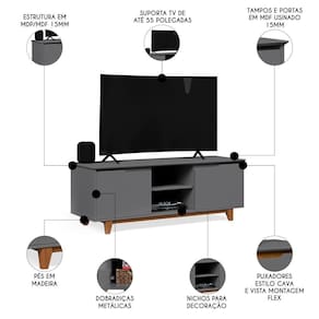 Transforme sua sala em um espaço de entretenimento e estilo com o Rack para Sala Bancada de 55 Pol 139cm Flow Cinza, da EJ Móveis!