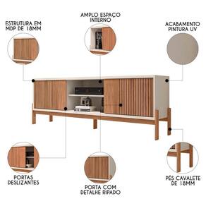 Eleve o conceito de estilo e funcionalidade na decoração da sua sala de estar com o Rack Para Sala Bancada de 72 Pol Ripado 184cm Tannen Freijó/Off White, da Caemmun.