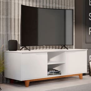 Transforme sua sala em um espaço de entretenimento e estilo com o Rack para Sala Bancada de TV 55 Pol 139cm Flow Branco, da EJ Móveis!
