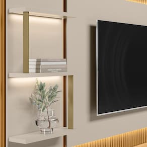 Uma sala de estar digna das telonas pode ser sua! Confira os detalhes do Rack com Painel Para TV 297cm Spencer, da Lyam Decor, e se apaixone!