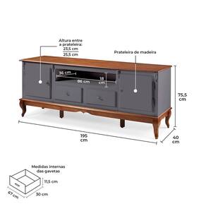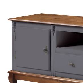 Rack para Sala com Pés Luis XV 2 Gavetas 2 Portas de Madeira e Nicho 60503M Linz Móveis - Cinza/Imbuia Glazer