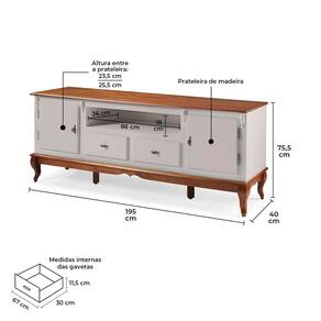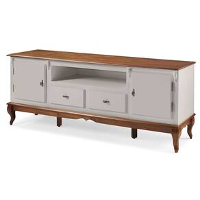Rack para Sala com Pés Luis XV 2 Gavetas 2 Portas de Madeira e Nicho 60503M Linz Móveis - Off White/Imbuia Glazer - Off White