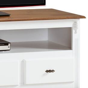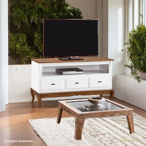 Rack para Sala com Pés Luis XV 60501 Linz Móveis 3 Gavetas e Nicho - Branco/Imbuia Glazer