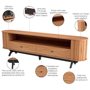 Com suas linhas suaves e orgânicas, esse rack bancada traz um toque de natureza para o seu espaço, refletindo a harmonia que procuramos em nossos lares. As amplas gavetas oferecem um espaço discreto para organizar seus itens, mantendo o ambiente sempre elegante e livre de bagunças, ao passo que os pés retrô não apenas garantem a estabilidade, mas acrescentam um charme nostálgico que remete a tempos passados, perfeita para aqueles que apreciam um toque vintage.