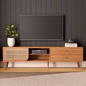 Fabricado 100% em MDF, esse rack bancada conta com uma porta de correr adornada por uma tela natural, que agrega um toque vintage que transforma o ambiente. Já as duas gavetas oferecem espaço generoso para manter tudo organizado, enquanto o tampo robusto serve perfeitamente para acomodar TVs de até 60 polegadas, unindo praticidade ao estilo. As linhas clássicas, combinadas com os pés estilizados, fazem deste rack retrô um verdadeiro ícone na decoração, ideal para quem valoriza um lar acolhedor e cheio de personalidade.