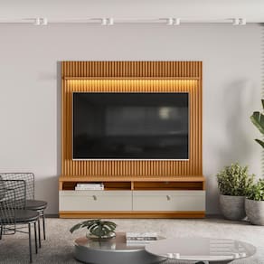 O Rack Para Sala de Estar com Painel Ripado Para TV 75 Pol Orizon L05 Nature Off White, da Lyam Decor, possui um design moderno e elegante que agregará estilo a sua sala de estar. O amplo rack oferece muito espaço de armazenamento para todos os seus dispositivos eletrônicos, enquanto o painel ripado adiciona um toque de sofisticação ao ambiente. Além disso, a iluminação LED integrada cria uma atmosfera acolhedora e contemporânea. Tenha uma sala de estar funcional e com muito charme com o Rack com Painel Ripado Orizon. Você vai se surpreender!