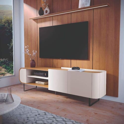 -Versatilidade de Armazenamento: Possui nichos abertos para exposição de objetos decorativos ou aparelhos eletrônicos e compartimentos fechados com portas para manter a organização.