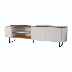 Eleve o nível da sua decoração com este móvel de design exclusivo que combina a leveza das linhas curvas com a robustez da madeira e do metal. Sua estética assimétrica e moderna é ideal para ambientes que prezam pelo estilo contemporâneo.