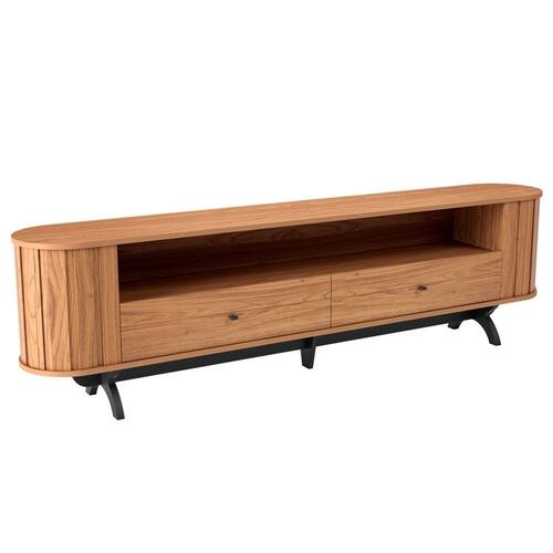 Descubra o Rack Orgânico Para Sala de Estar Penina 220cm, da Lyam Decor, onde o design curvo se funde com a estética retrô para criar uma peça verdadeiramente única e acolhedora.
