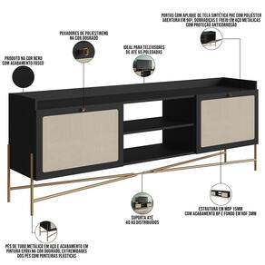 Monte a sala de estar dos sonhos com o Rack para Sala Indy, da Lyam Decor. Com design moderno e elegante, esse rack para TV não é apenas uma peça decorativa, mas também uma solução prática para organizar seu espaço e expor aparelhos de TV até 65 polegadas. Além disso, os pés metálicos estilo industrial garantem durabilidade e um toque rústico, enquanto o detalhe em tela sintética traz um charme artesanal que irá encantar a todos. Para completar, é o produto Ideal para acomodar seus eletrônicos e exibir suas decorações; afinal, esse rack 2 portas combina versatilidade e beleza, elevando a estética de qualquer ambiente. Aproveite cada momento em frente à TV com conforto e estilo! Dê vida nova à sua sala e garanta já o seu!
