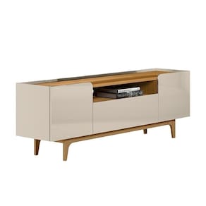Elegância e funcionalidade são os adjetivos que melhor definem o Rack para Sala de Estar 75 Pol 3 Portas 180cm Milano L05 Tauari Off White, da Lyam Decor.