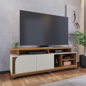 Transforme o seu ambiente com estilo e funcionalidade com o Rack para Sala De Estar TV 75 Pol com Rodízios Laguna C04 Off White Freijó, da Lyam Decor.
