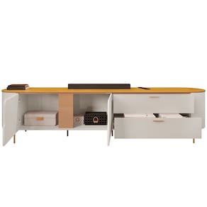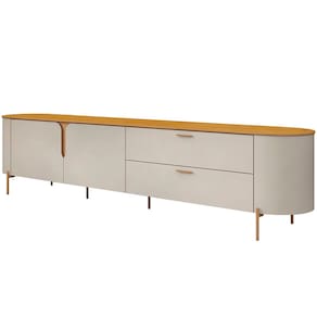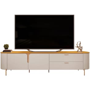 Os contornos suaves e os cantos arredondados não apenas conferem um visual harmônico, mas também garantem que a estética orgânica se destaque em qualquer decoração, trazendo um ar de tranquilidade e beleza natural para sua sala. Enquanto os pés metálicos proporcionam um contraste perfeito, adicionando um elemento de robustez e estabilidade ao móvel, a tonalidade dourada traz um toque de glamour, que combina com qualquer paleta de cores. Para completar essa experiência, você contará com excelente espaço interno, tanto nas portas, quanto gavetas, de modo que terá uma bancada limpa e uma sala de estar organizada. Em outras palavras, é a peça-chave para criar uma atmosfera acolhedora, ideal para momentos de lazer e entretenimento com a família e amigos.
