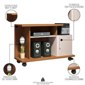 Mais que compacto, esse rack pequeno para sala ainda é muito versátil, pois os rodízios facilitam a mobilidade caso queira muda-lo de lugar, sem contar que na hora da limpeza também faz toda a diferença. Além disso, esse modelo suporta TVs de até 26 polegadas e você ainda pode aproveitar os demais nichos e prateleiras para dispor outros aparelhos eletrônicos e decoração.