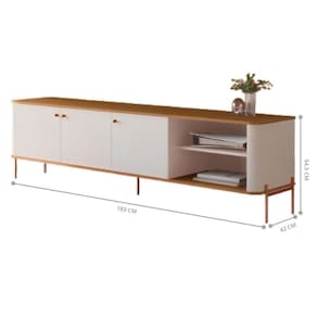 Estrutura robusta com pés e puxadores em metal, garantindo resistência e um toque de elegância.Base e topo em MDF de 15mm, conferindo durabilidade e um acabamento de alta qualidade.Com 3 portas e 1 prateleira, oferece amplo espaço para armazenamento e organização dos seus dispositivos.Suporta TVs de até 70 polegadas, proporcionando versatilidade para diferentes modelos de televisores.