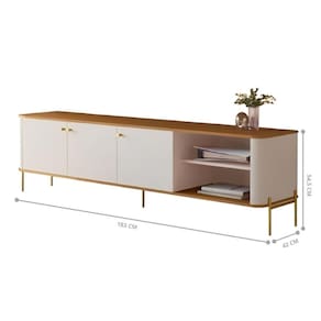 ALTURA DO PRODUTO (CM): 54,5 | ALTURA DO PRODUTO COM EMBALAGEM (CM): 43 | COMPRIMENTO DO PRODUTO (CM): 42 | COMPRIMENTO PRODUTO COM EMBALAGEM (CM): 75 | CONTEÚDO DA EMBALAGEM: 1 Bancada | DESCRIÇÃO DO TAMANHO: 54,5x183x42 | ESTADO DE ORIGEM: SP | FORMATO DO MÓVEL: Rack | INSTRUÇÕES/CUIDADOS: Limpar com flanela ou pano macio seco, não utilizar produtos abrasivos, desengordurantes, álcool ou solvente. Não expor o produto diretamente à luz solar e à umidade | LARGURA DO PRODUTO (CM): 183 | LARGURA PRODUTO COM EMBALAGEM (CM): 182,5 | MARCA: Casa H | MATERIAL PARA FILTRO: MDF | MATERIAL PRINCIPAL: MDF | PARA TVS DE ATÉ:: 70 polegadas | PESO DO PRODUTO (KG): 29,7 | PRODUTO PRECISA DE MONTAGEM?: Sim, a montagem é facil mas sugerimos a contratação de um montador para a montagem do produto. Não nos responsabilizamos por danos causados no ato da montagem. | QUANTIDADE DE PORTAS: 3 | QUANTIDADES DE CAIXAS DE EMBALAGEM: 1 | TAMANHO: 70 polegadas | Requer montagem: Sim | País de Origem: | Montagem: Necessita Montagem Cor: Off White Nature Dourado